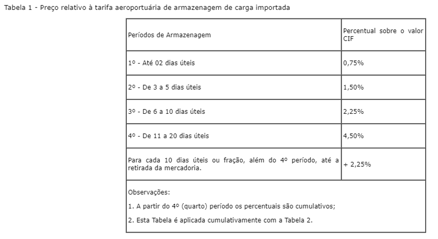 A partir de 01/01/2022 temos novas tarifas de armazenagem e capatazias sendo aplicadas pelos aeroportos