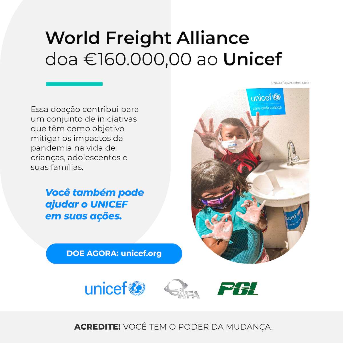 A World Freight Alliance, da qual a PGL é uma das fundadoras, doou €160.000,00 ao Unicef com o objetivo de colaborar no enfrentamento dos problemas causados pela Covid as crianças, adolescentes e seus familiares. Em especial aos que possuem acesso reduzido ou quase nulo à educação e saúde neste momento.