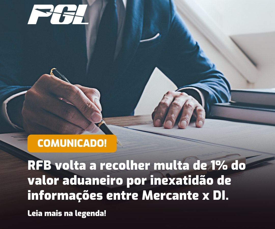 RFB volta a recolher multa de 1% do valor aduaneiro por inexatidão de informações entre Mercante x DI