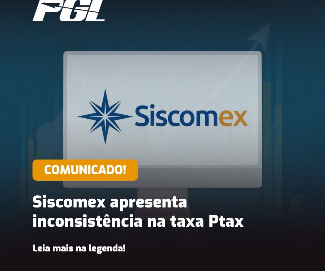Informamos que o Siscomex está apresentando inconsistência na taxa cambial Ptax. A tabela aduaneira não está sendo atualizada de acordo com o site do Banco Central.